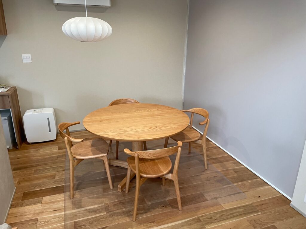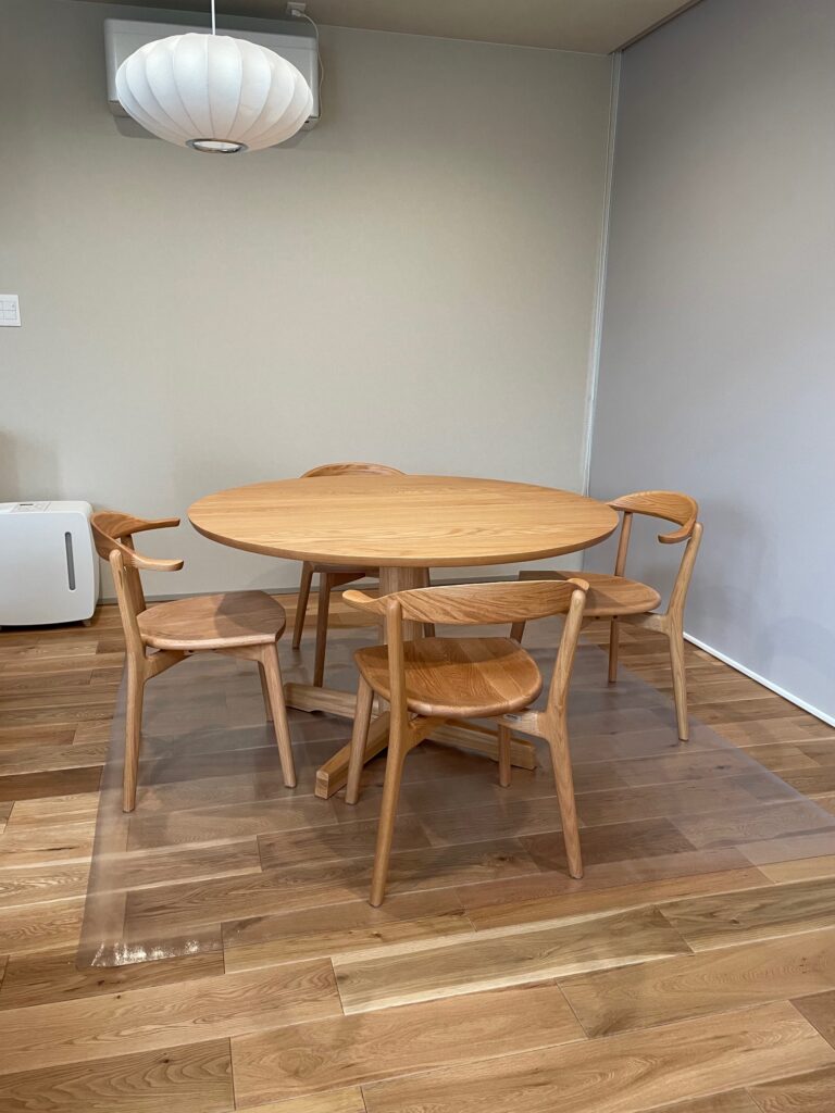 納品事例《オーク材でコーディネートした丸テーブルがおしゃれなリビングダイニング・三重松阪 M様邸》