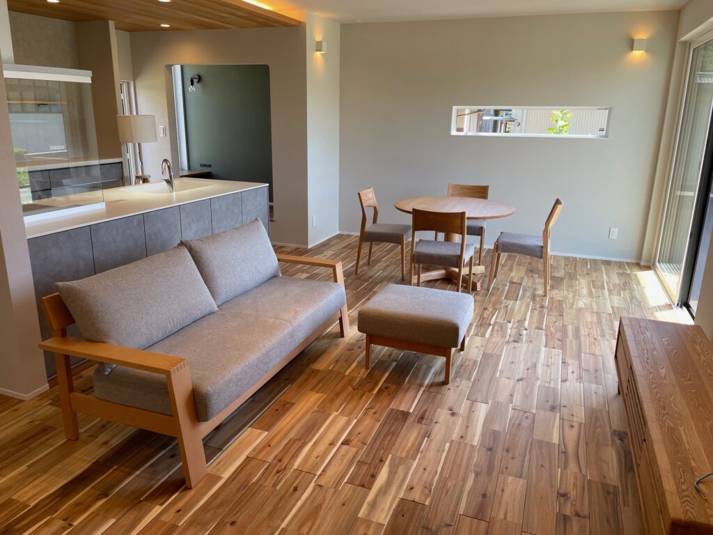 納品事例《丸テーブルがおしゃれなナチュラルスタイルリビングダイニング・三重度会郡 H様邸》