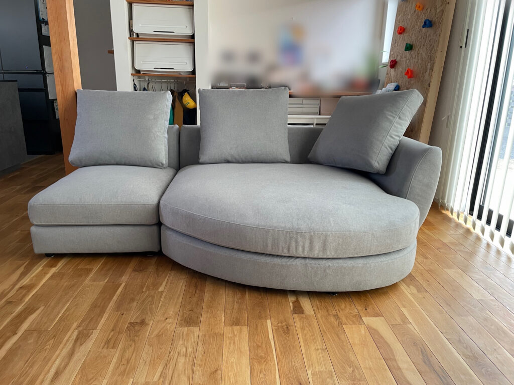 家族みんなでソファの上で寛げる、ゆったりとしたルーミーカウチソファが納品されました。