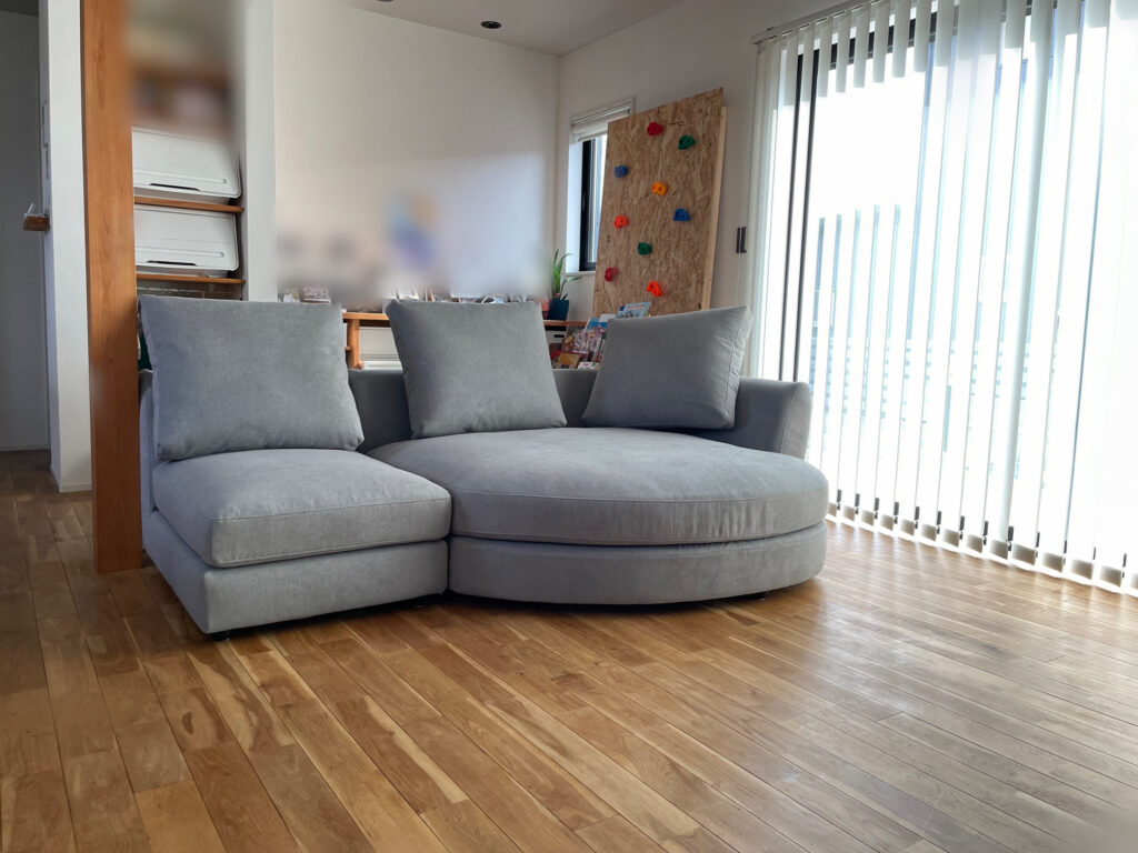 納品事例《家族でごろごろ寛げるロータイプルーミーカウチソファ・三重度会郡 T様邸》