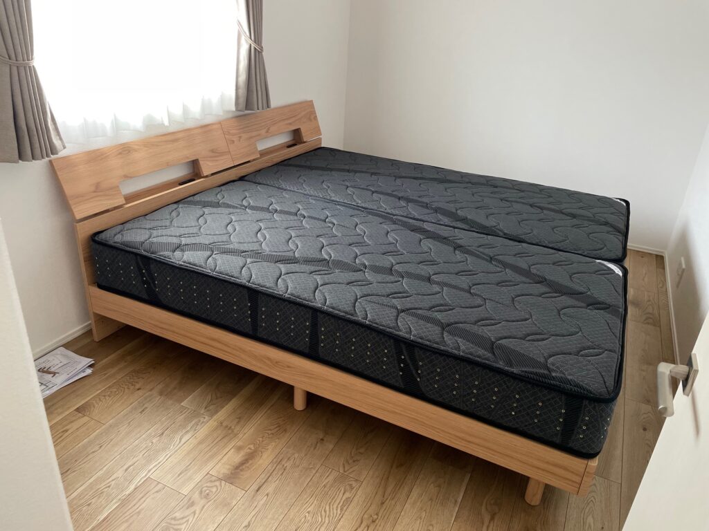 同じシリーズのマットレスで高さを合わせ、マットレスの硬さを奥様とご主人で変えました。