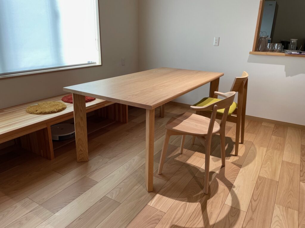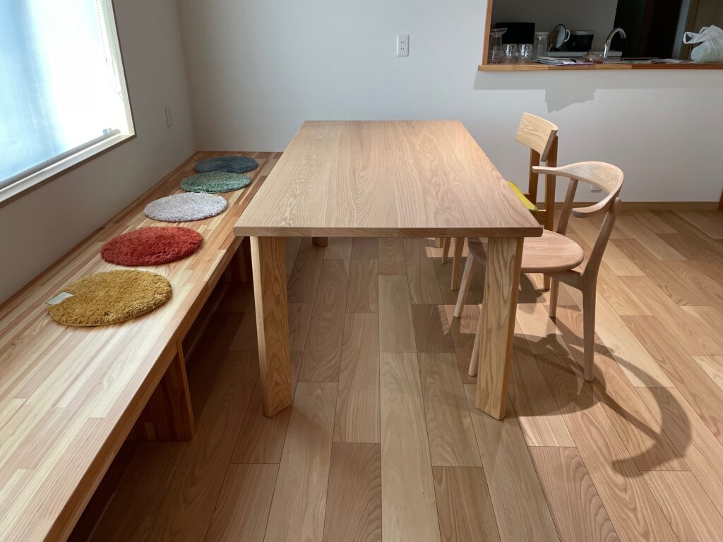 床やベンチも無垢材をふんだんに使用しているお家でしたので、テーブルもオーク材無垢がよく合います。