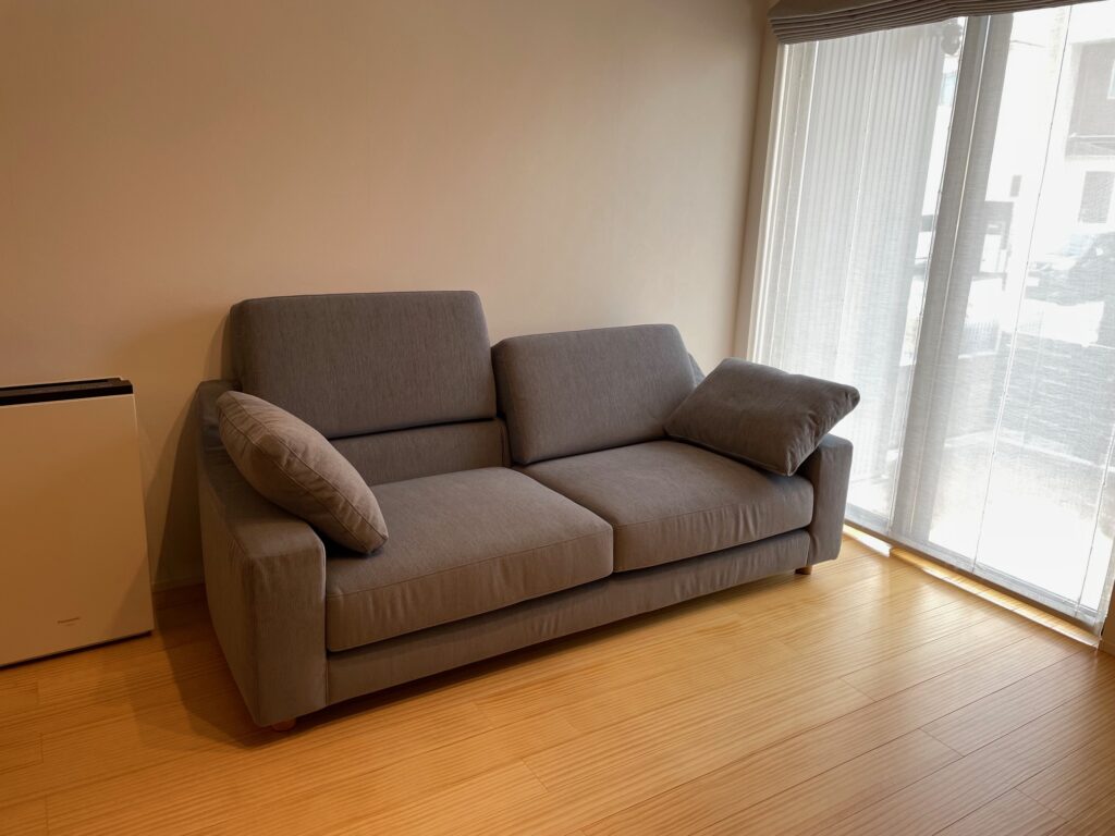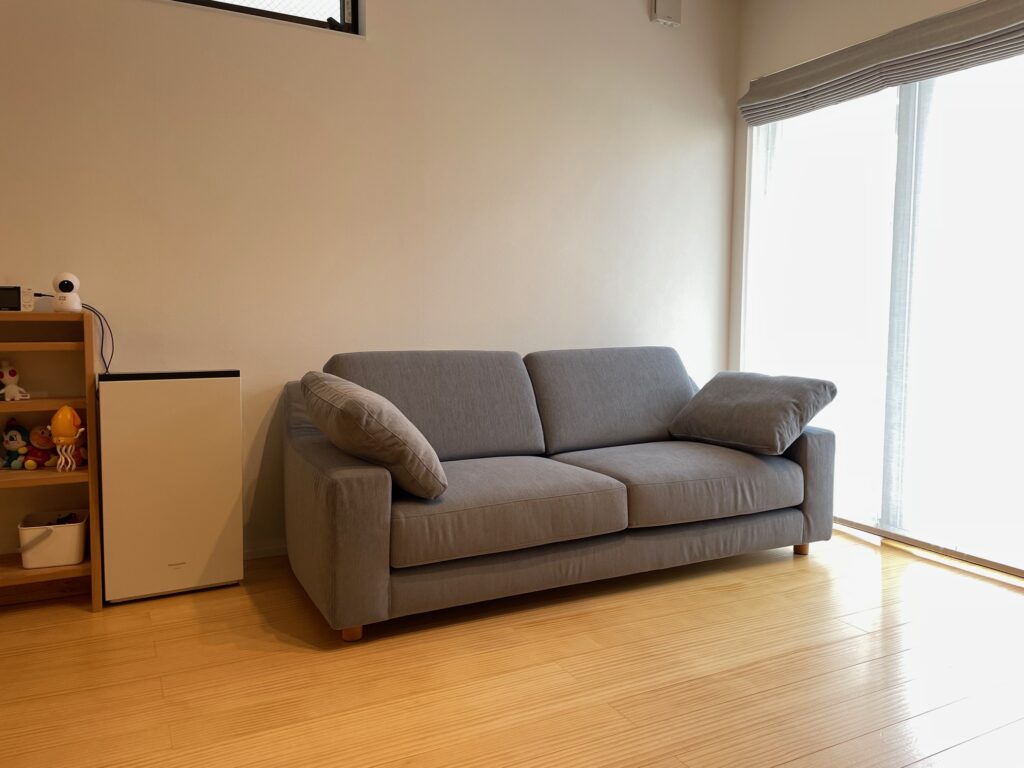 ルームプラスの納品事例で座面の高さの低いソファの納品がある際は、小さなお子様や小型犬がいらっしゃるご家庭が多いです。