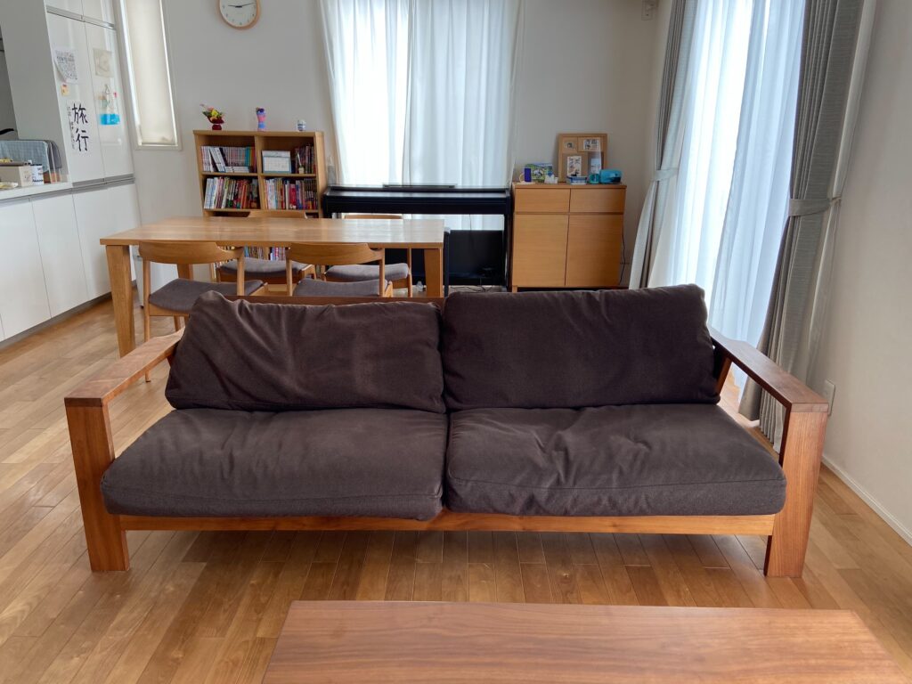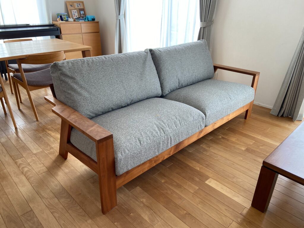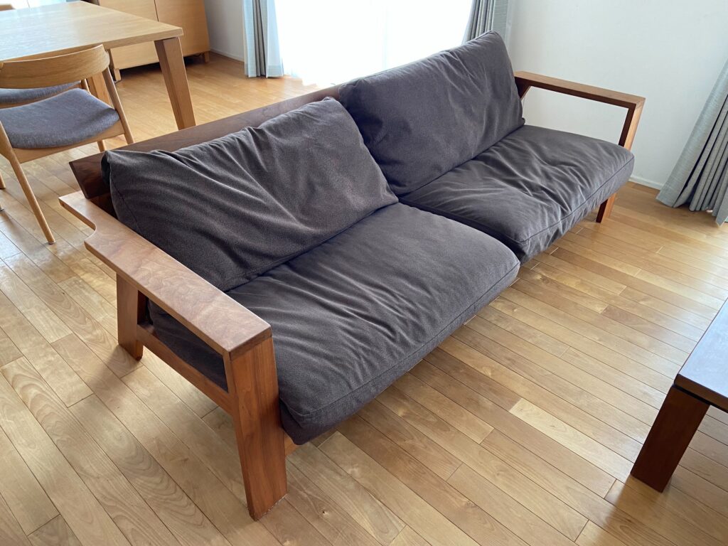 国産ウッドフレームソファのクッション&カバーを交換してきました。