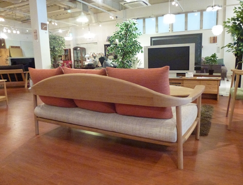 アームから背板に流れる独特のラインは非常に美しくお部屋の中心に置いても綺麗な逸品です。